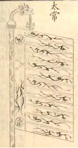 东汉大儒郑玄认为,商朝取代夏朝后,礼制规定,九旒龙旗是天子的旗帜。九旒龙旗在中国古代等级森严的礼制中,地位仅次于太常旗。太常旗是天子祭祀上天时悬挂的旗帜,旗画日月星辰,以象征天,是最高级别的旗帜。龙旗九斿,位于太常旗之下,是象征天子与诸侯。天子旗帜画升龙;诸侯旗帜画双龙交汇,一升龙一降龙(头向上龙和头向下龙)。天子龙旗上的龙,基本上都是用苍龙七星的星象造型,龙体修长、线条流畅,头上有角、四腿5爪。