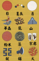 据记载,商周时期已有章服制度,有十二章纹的说法。在《尚书·益稷》中有记载舜帝让禹制作服饰:“予欲观古人之象,日、月、星辰、山、龙、华虫,作会(通“绘”);宗彝、藻、火、粉米、黼、黻,絺绣,以五采彰施于五色,作服。到了周代,周公旦制定《周礼》,规定以日、月、星辰三章画于旗帜,衣服上只保留九章纹,以龙为首章而称为“龙衮”。公元59年,汉明帝又制定了详细的祭祀服饰及朝服制度,规定:天子用十二章,三公、诸侯用九章,九卿用七章。至此之后,历朝历代对于十二章纹的演绎虽小有改动,但大体形制则被沿袭了下来,沿用了近两千年。