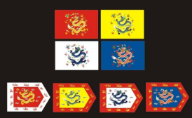 清朝依靠八旗部队驰骋天下,八旗的八面旗帜都是龙旗,分为满八旗、蒙八旗、汉军八旗,满八旗是努尔哈赤创造的战事指挥编制,分为上三旗以及下五旗,按颜色分为黄、白、红、蓝,再分为正旗和镶旗,共计八旗。镶旗除镶红旗之外,都是本色旗镶红边,镶红旗镶白边。满八旗也被称为大龙旗。