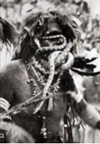 下面这两张是1915年拍摄的霍皮族人口中衔着蛇祈祷的视频截图和雕塑。