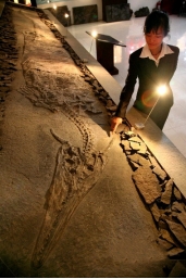 古生物学家说:“新中国龙”是生活在两亿多年前的三迭纪海洋中的水生爬行动物,水陆两栖均可生活,尽管它们能自由地在陆地上爬行,并在陆地上产卵繁殖,但大部分时间仍生活在水中。这种龙用强壮的浆状四肢和粗壮的长尾在水中游动,靠捕食鱼类和小型水生爬行动物为主。
