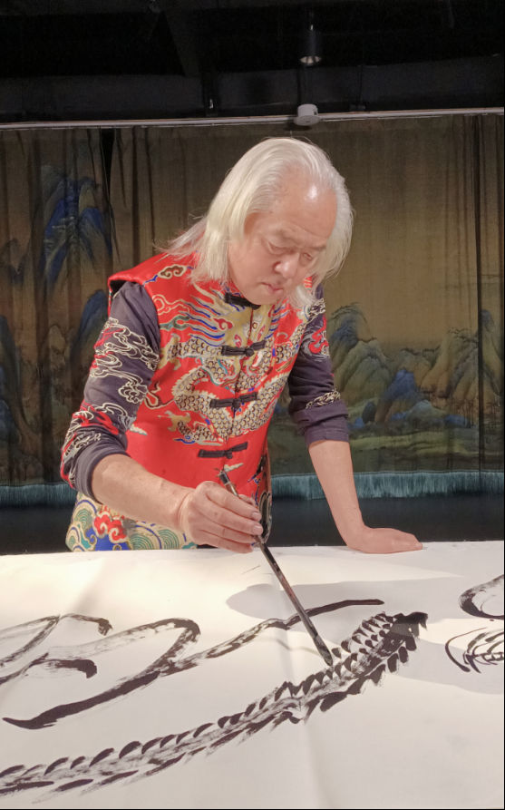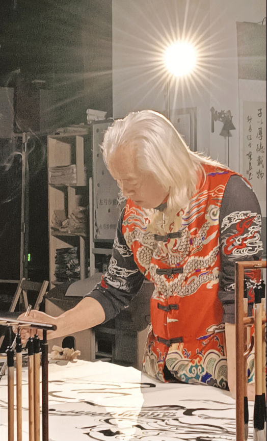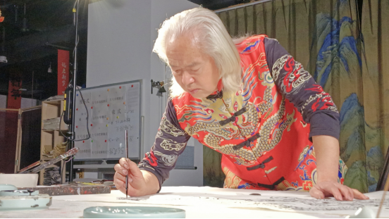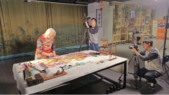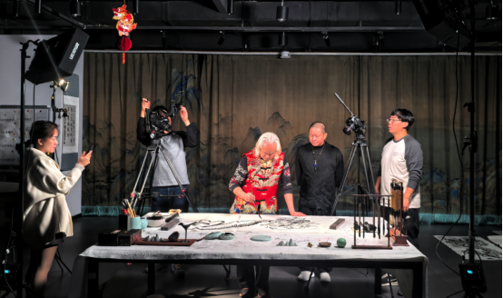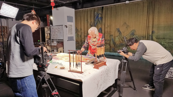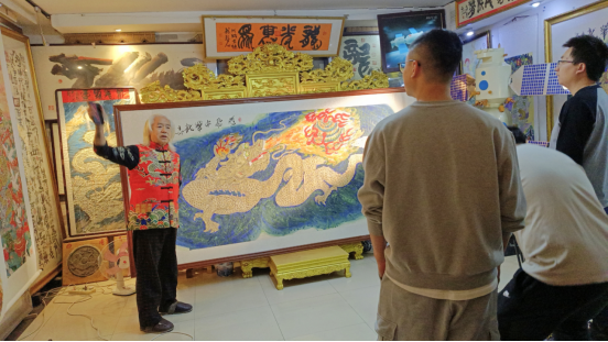 2024年10月25日,中央电视台探索栏目组来到龙宫,对龙黔石会长和他的《腾飞中华龙》画作进行了拍摄。