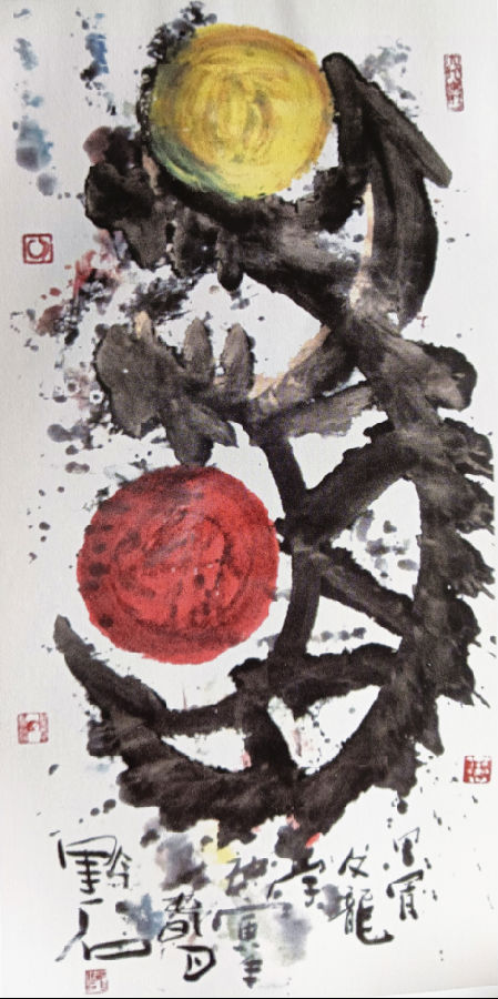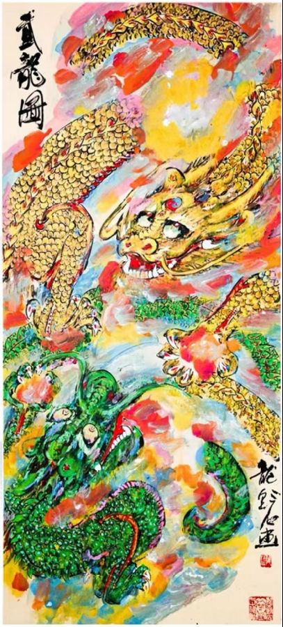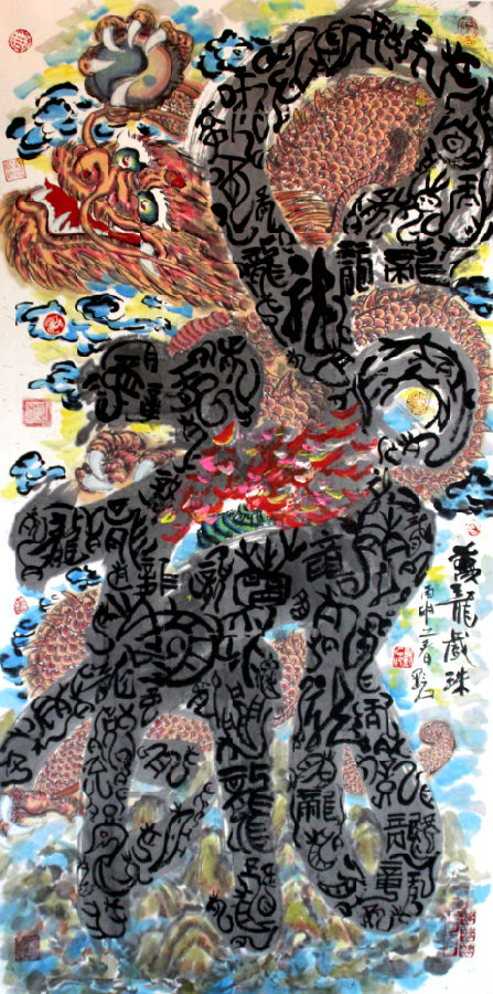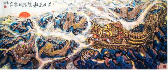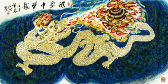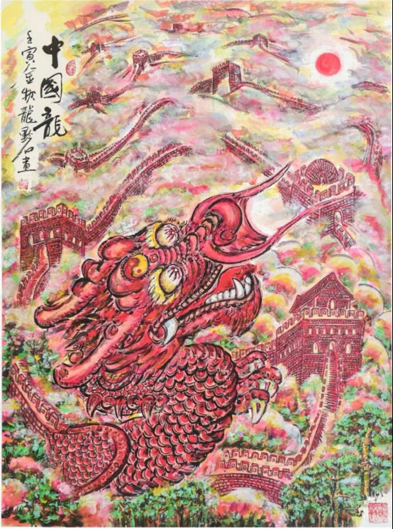 龙黔石大师的主要作品--《中华九龙壁(魂)》,高5米、长20米。此巨幅画作,历经三年的艰辛于“龙宫”创作完成。无论从神韵、内涵、造型、色调上均有所突破和创新。画中还融入了不同时代、不同造型、不同寓意的有代表性的小龙,共计9999条尊龙。2002年3月24日龙黔石大师创作的《腾飞中华龙》随神舟三号宇宙飞船遨游太空七天安全返回地面,实现了中华民族飞龙上天的伟大梦想,2016年龙黔石大师为北海舰队贵阳导弹驱逐舰《蛟龙出海所向披靡》巨幅国画捐赠给海军官兵。2013年龙黔石大师随中国艺术家代表团联合国大会,并举办龙画艺术展中国龙第一次登上联合国最高殿堂。