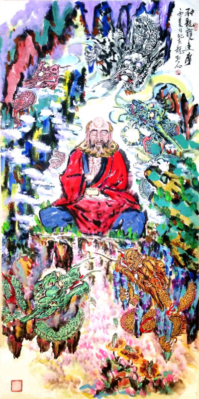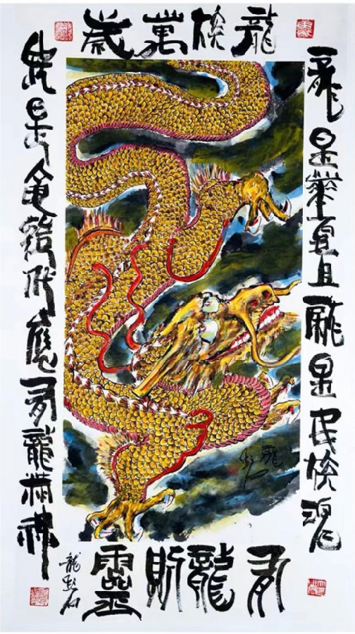 龙黔石大师,字云海、号天水,1952年生贵州省江口县,现北京市民。姓龙、属龙、画龙、书龙、刻龙,中国书协名誉主席沈鹏先生赐雅号为“五龙”,即他又名为“五龙先生”,师承中央美术学院王森然教授和著名书画家卓然、肖劳、柳倩先生。中华龙学创始人龙黔石大师现为北京龙促进会会长《龙经》著作者龙黔石大师中国龙文化书画院院长 中国龙文化协会名誉主席 国家民委中国民族书画院副院长 中联国兴书画院副院长 贵州民族大学美术学院兼职教授 中华龙文化巡展“爱心大使” 中国文联书画交流中心画家 国际美术家协会理事 中国书画家联谊会理事 北京齐白石研究会常务理事 中国美术艺术家协会副主席 中国书法家协会北京会会员 中国美术家协会贵州分会员 国家一级画家 龙黔石大师现被文化部、中国人才研究会艺术家学部委员会授予“功勋国画艺术家”、“世界艺术大师”荣誉称号,被国家九部委授予“中华画龙第一人”、“中华龙文化传承人”光荣称号。其传略被收入《中国当代国画家辞典》、《中国当代艺术家名人录》、《中国专家大辞典》等。