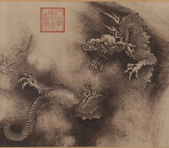 ① 陈容《墨龙图卷》,绢本墨笔,34.3厘米×50厘米,北京故宫博物院藏。