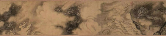 ? 陈容《九龙图》,纸本墨笔,1244年,46.3厘米×1096.4厘米,美国波士顿艺术博物馆藏。