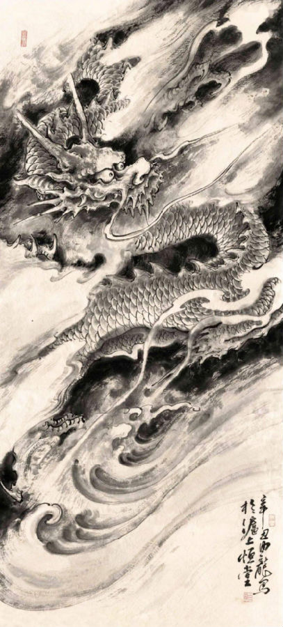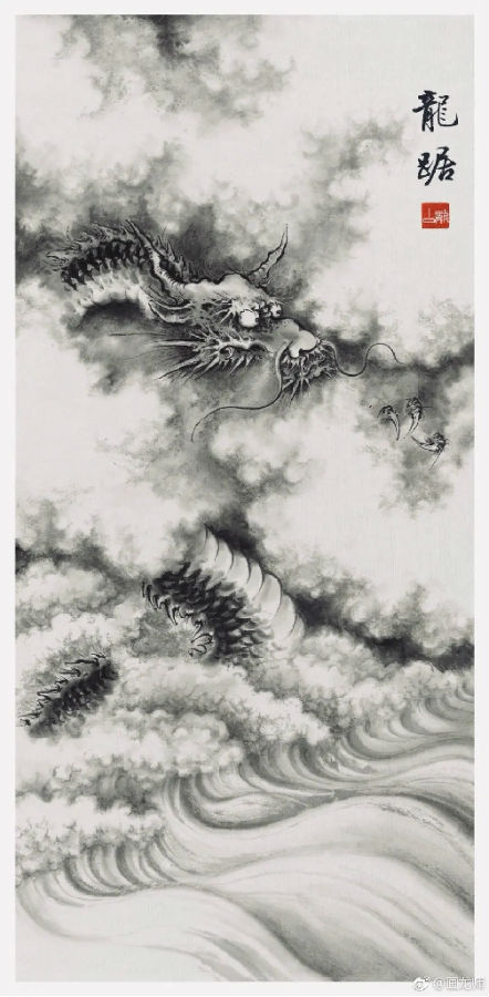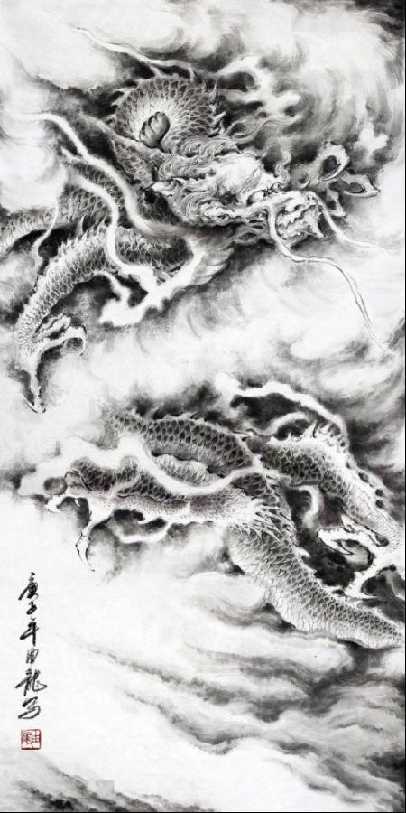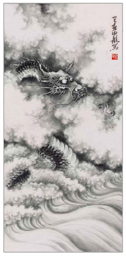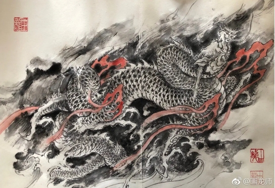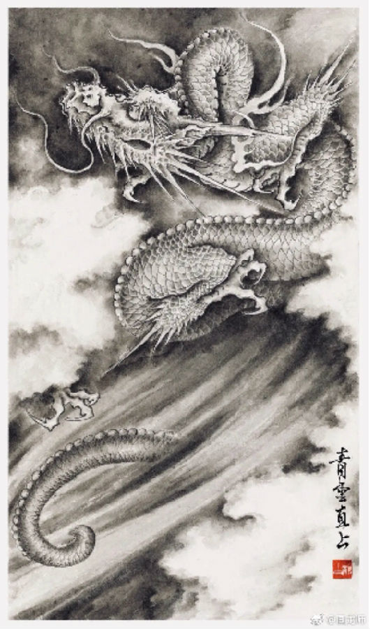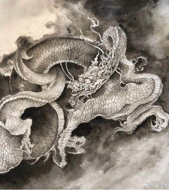 由龙认为:画龙主要研究的对象笔墨居其次,而是龙图腾造型本身的结构造型,躯体四肢、须眉五官,应该有的布局形态,虚实体现的想法,前后关系的思考,画面应有的构图布置等等才最为重要,水墨只是展现方式的一种,可以用油画的方式,素描的方式,水粉水彩丙烯等等不同材料不同载体来绘制和体现。所以最为主要的研究对象应该是龙纹本身。