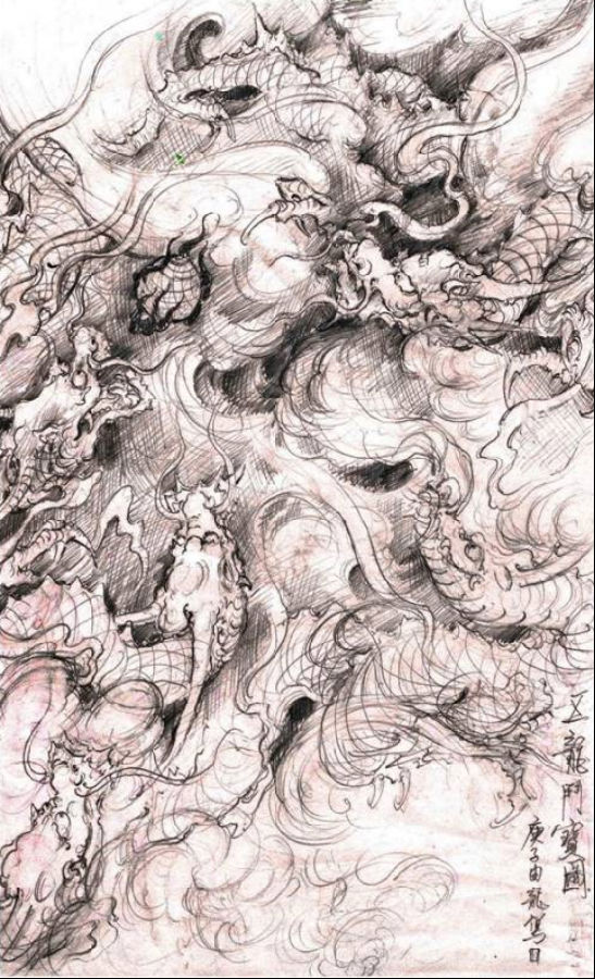 由龍对于龙纹研究莫名的愿意投入精力和时间,多年来笔耕不辍。从开始的铅笔素描绘制到今日的毛笔水墨,由龙对龙纹继承发扬有着莫名的使命感。这种莫名是骨子里的,人问“怎么坚持下来的”答曰:无需坚持,皆兴致尔。