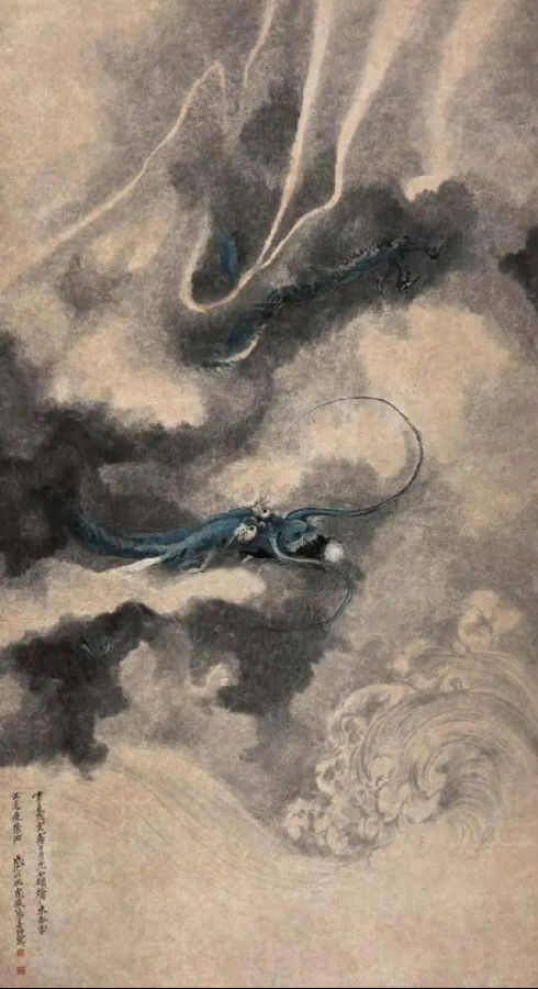 在抗日战争前后张善孖先生画了很多幅象征着中华民族图腾的中华龙的作品以激发国人的抗争精神!