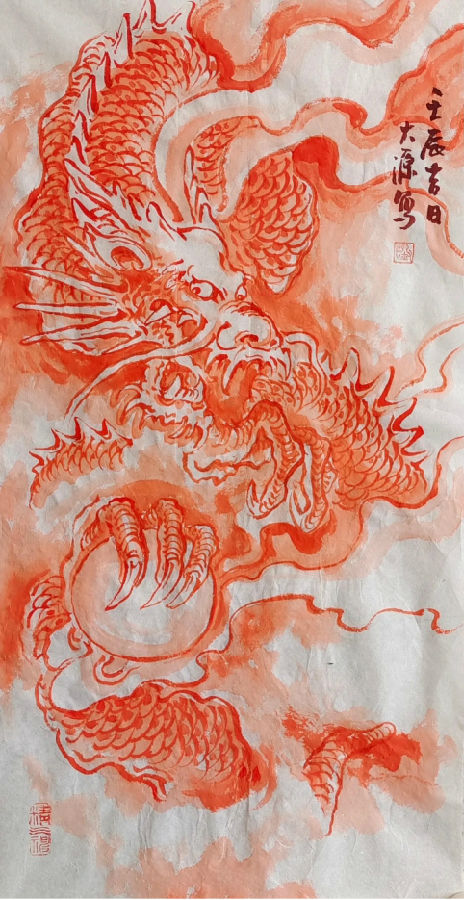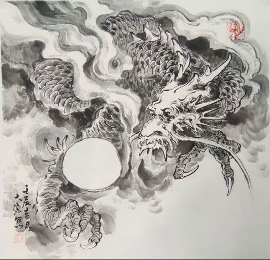 刘大源出身书香门第,祖上几朝为官。幼承家训学习国画及中国传统吉祥纹饰。刘大源幼时就开始画龙,各个朝代的龙纹饰融会贯通,形成自己的独有的画龙风格。无论是龙的各种表情、身体结构、场景、风雨雷电无不有着自己独特的绘画语言。画出龙的传奇精气神!近些年来收藏界有齐白石的虾、徐悲鸿的马、黄胄的驴、李苦禅的鹰、刘大源的龙的盛誉!被誉为古有陈荣今有刘大源,被称为中国当代画龙第一人!