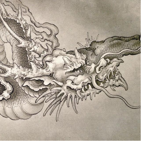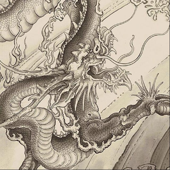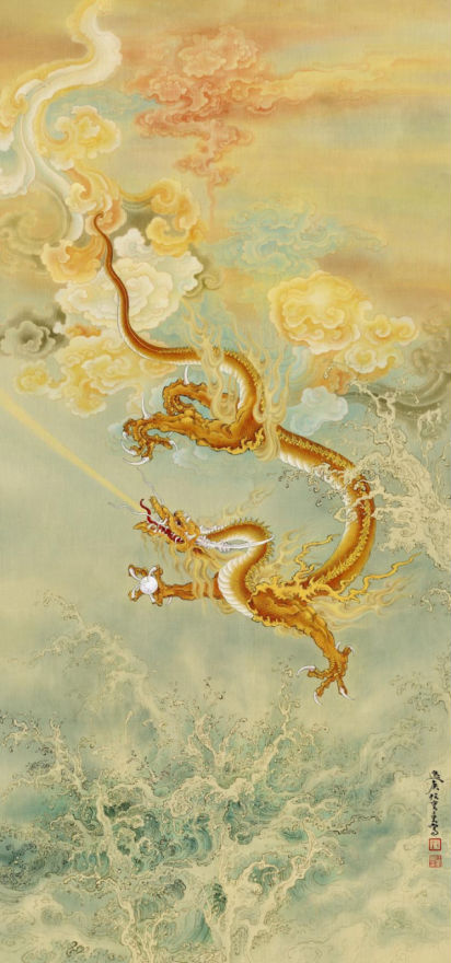 在这幅《龙腾甲辰》中,龙爪握龙珠,双目炯炯有神,整幅画颇具动感,大面积金色的使用给人以极强的视觉冲击力,我们不仅能从中感受到龙的矫健与勇猛,更体会到中国人昂扬向上的精神面貌。