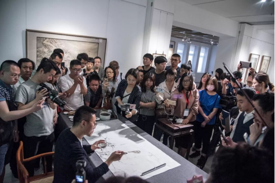 秉持“古人之心”的任重,对于高古人物等古典题材有着一种特殊的情怀,“这种情怀在时间的流逝里显得更为珍贵。今天的人对古代的圣贤高隐、伟大的思想、伟大的文化依然热爱和留恋,就是一种内心深处的情结。不是说我想回到古代,或是追古。恰恰相反,师古人之迹,不如师古人之心。这个心,对人生、对宇宙、对艺术,都是启迪。古人比较朴实、单纯。他的一生可能不像我们要做很多事,他只做了一件事。但我们做了这么多事,有没有古人做一件事做得好呢?”所以任重在艺术中,也是以此来要求自己,对传统文化不曾懈怠的补课,对文房器具不计代价的收藏,对笔墨纸砚更是近乎苛求到只用古墨与特别定制的纸张。