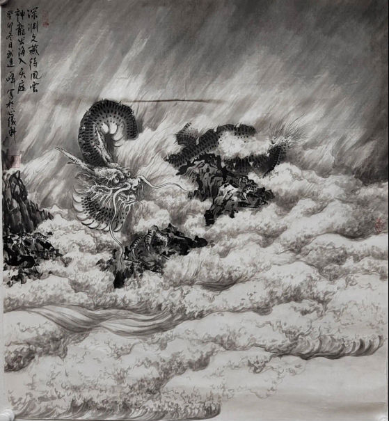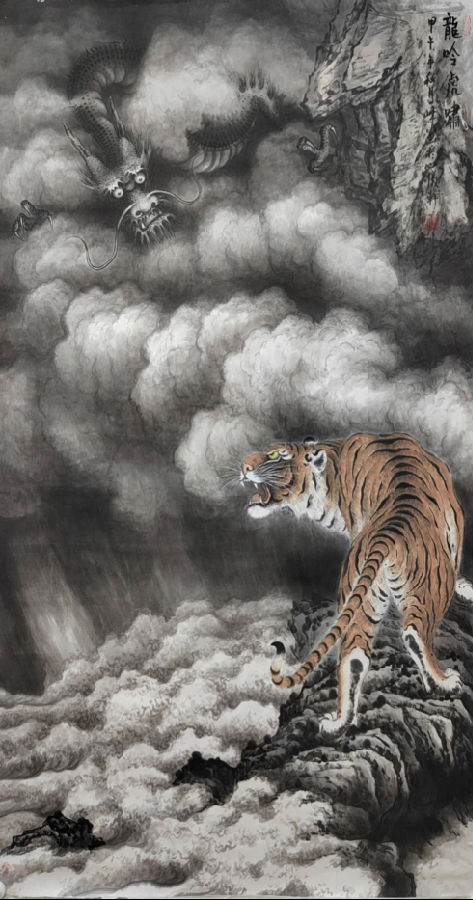 在常州这片充满文化底蕴的土地上,郭一峰先生以其精湛的画龙艺术,成为了当代画坛的一位璀璨明星。自幼执笔,他便与龙结下了不解之缘,八十年代,他在陆琨先生的门下求学,继承了民国画龙名家房虎卿的艺术血脉,成为其第三代传人。郭先生的画龙,不仅仅是一种技艺的展现,更是一种文化的传承,一种精神的流露。在他的笔下,龙不再是高高在上、遥不可及的神话生物,而是栩栩如生、充满力量与智慧的存在。他的线条凝重而朴厚,每一笔都透露出深厚的功力,每一幅作品都是气象磅礴的艺术巨制。郭先生的龙,仿佛能云行雨施,穿梭于天地之间,带给观者无尽的遐想与震撼。然而,郭一峰先生并未满足于传统的画龙艺术,他渴望将这门艺术推向更高的境界。为此,他将画龙与传统山水画法相结合,创造出一种全新的艺术风格。他的这种尝试,不仅拓宽了自己的艺术视野,也为传统画龙艺术注入了新的活力。在追求艺术创新的道路上,郭先生又拜入中国当代山水画名家李小可先生门下,继续深造。在北京画院的学习,使他的画龙艺术如同百尺竿头,更进一步。他的作品中,山水与龙浑然一体,相得益彰,展现出一种前所未有的美感与力量。如今,郭一峰先生不仅是荣宝斋画院李小可工作室的画家,还是江苏省美术家协会的会员,常州信息职业技术学院艺术设计学院的客座教授,以及常州市佛教文化研究会的理事。他的身份多重,但他对艺术的热爱与追求从未改变。郭先生的作品,已被多家美术馆、文化机构以及个人藏家所收藏。每一幅作品,都是他对中国传统文化的深情致敬,也是他个人艺术成就的见证。在这个快速变化的时代,郭一峰先生用他的画笔,为我们描绘出一个个永恒的龙的形象,让我们在欣赏的同时,也能感受到那份源远流长的文化魅力。郭一峰先生的艺术之路,正如他所画的龙一般,腾云驾雾,遨游于广阔的艺术天空,不断探索,不断创新,永远向着更高的艺术境界飞翔。