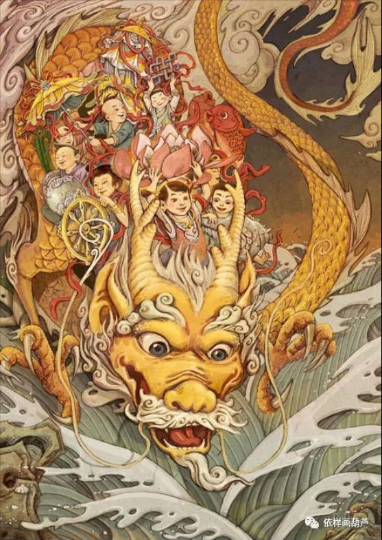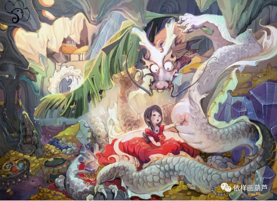 莲羊2005~2010年在欧美和日漫充斥国内市场时,研究中国风CG插画;2010~2015年间又系统学习中国传统文化、深入探索以水墨为主的传统绘画艺术;2015至今,莲羊的艺术创作主要以岩彩画为主,岩彩艺术是中国宋代以前的主要绘画形式。作为研究者,莲羊沿着丝路考察敦煌、龟兹,赶赴中国台湾、日本等地收集相关历史文献、技法残卷梳理成册;作为创作者,她强调传承之上要做创新,作品里充满东方色彩和元素,注重天然矿物质的应用,浓郁的国风之下伴随着对时代的思索,所以作品既古朴又当代,深受年轻人的喜爱。