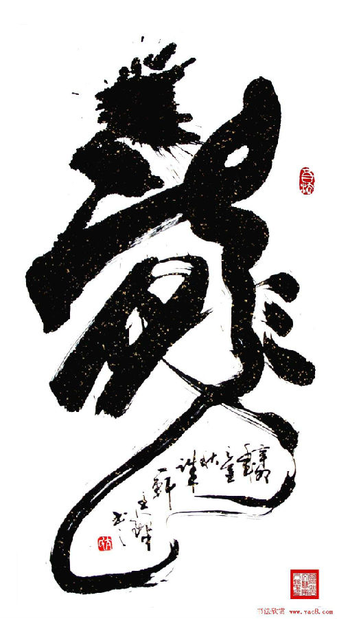 诉个性之声言。新姿一派,形无二兼,笔拓三弯,墨泼四溅,五色分明,锋出八面。