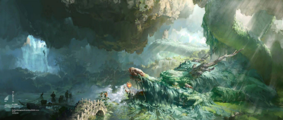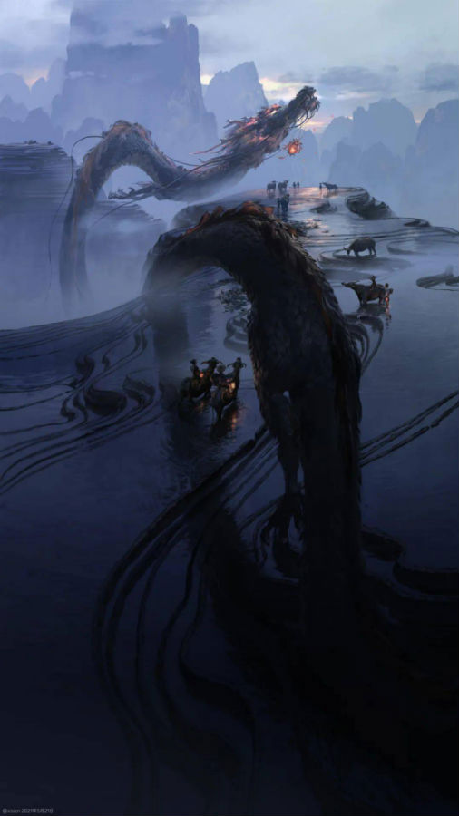 小时候的他,每天都会经过大足石刻,中国文化的神秘美丽,重庆山水的奇异灵秀,熏陶着这个男孩对美的理解,于是,在吴俊达的笔下,华夏传统文化、神话传说与山川风景自然而然地汇聚在了一起,除了前述的火出圈的毕业作品,吴俊达还曾以中国神话中的神兽