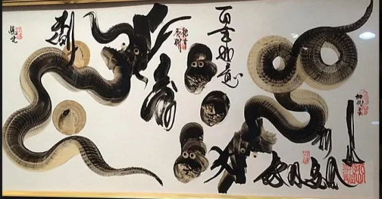 在一笔龙的艺术中,既有水墨画的风格,又有书法的技巧。画龙身的时候,要完美控制力道的转换,多一分力则糊,少一寸劲则淡。